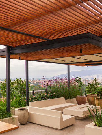 Buscamos crear una experiencia visual desde el interior del apartamento, donde la vegetación actúa como cortina viva. Además, diseñamos zonas de descanso y contemplación con plantas que se adaptan al viento y al sol directo.
